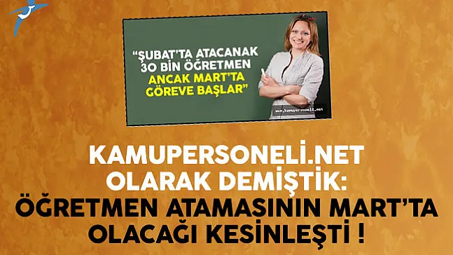 - Kamupersoneli.net olarak demiştik: Öğretmen Atamasının Mart'ta Olacağı Kesinleşti