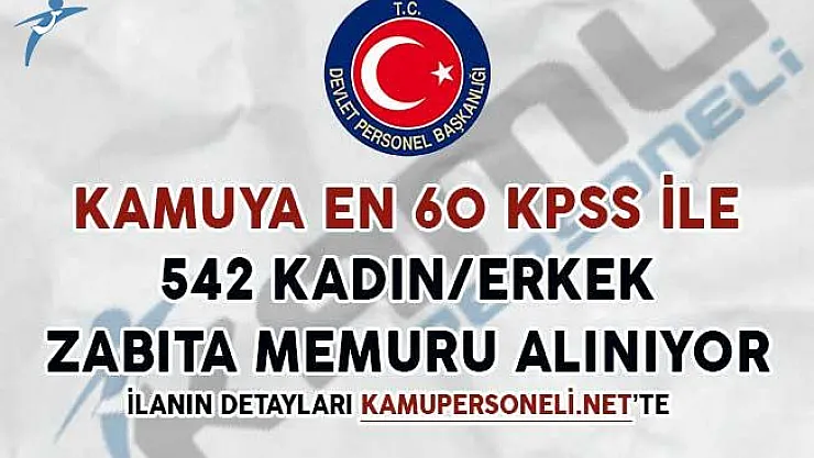 - Kamuya En Az 60 KPSS İle 542 Kadın/Erkek Zabıta Memuru Alımı Yapılıyor