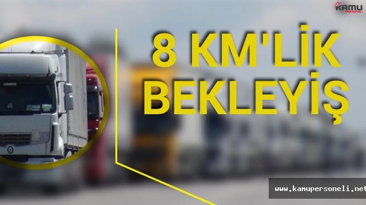 Kapıkule Gümrük Kapısı'ndan yurt dışına çıkmak için bekleyen tırlar 8 kilometrelik kuyruk oluşturdu.