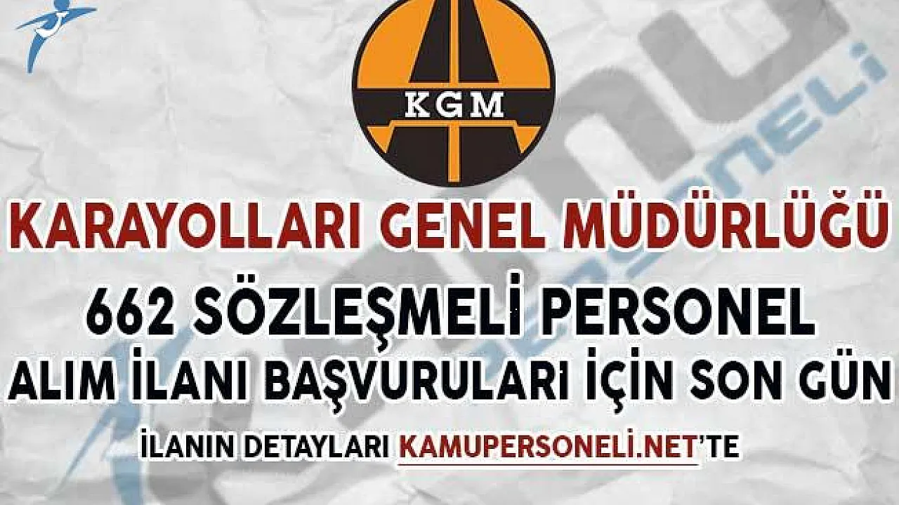 - Karayolları Genel Müdürlüğü (KGM) 662 Kamu Personeli Alımı Başvuruları İçin Son Gün