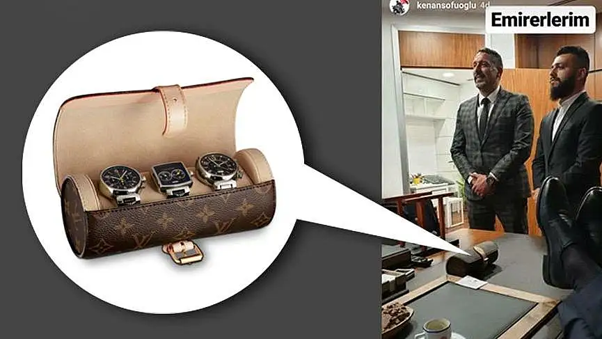 Sözcü gazetesi, masadaki o çantanın bir saat kabı olduğunu içinin üç tane saat aldığını ve Louis Vuitton’ın resmi internet sitesinde fiyatının 500 pound yani 3.350 TL olduğunu tespit etti.