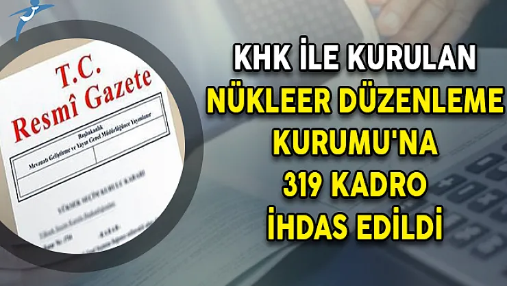 Resmi Gazete'de yayımlanan 702 Sayılı Kanun Hükmünde Kararname İle beraber kurulan Nükleer Düzenleme Kurumu'na 319 kadro ihdas edildi.Kamupersoneli.