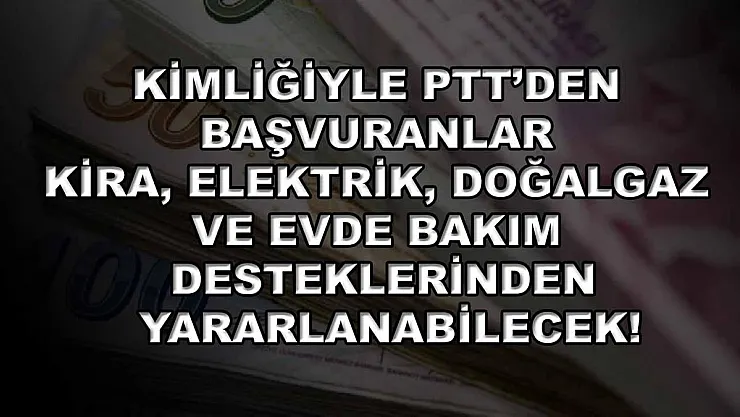 - Kimliğiyle PTT'den başvuranlar kira, elektrik, doğalgaz ve evde bakım desteklerinden yararlanabilecek!