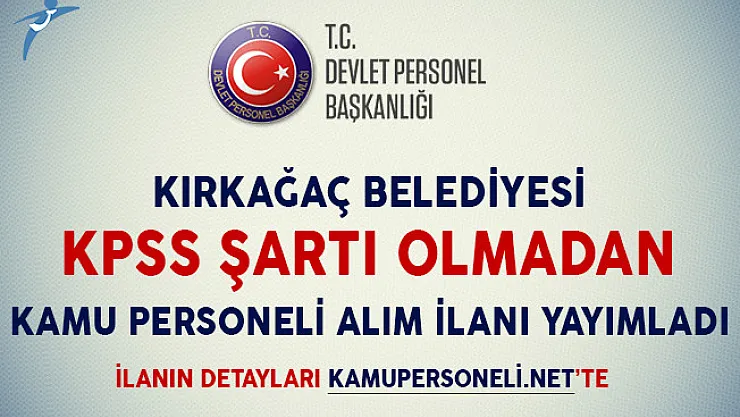 - Kırkağaç Belediyesi KPSS Şartı Olmadan Kamu Personeli Alım İlanı Yayımlandı