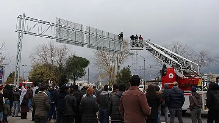 İzmit'te akşam saatlerinde iş bulamadığını iddia eden bir şahıs, şehir merkezindeki en işlek caddede bulunan yön tabelasına çıkarak intihar girişiminde bulundu.Edinilen bilgiye göre Hasan İnan adlı şahıs, Siirt'ten İzmit'e geldiğini ancak iş bulamadığını,