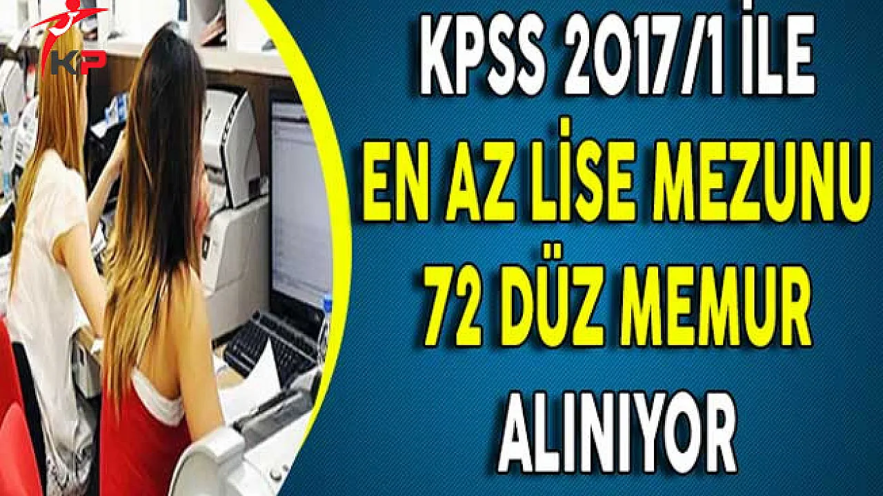 - KPSS 2017/1 İle En Az Lise Mezunu 72 Düz Memur Alınıyor