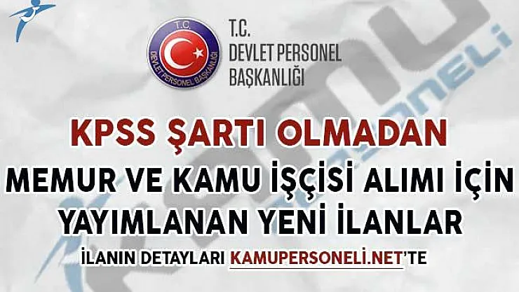 - KPSS Puan Şartı Olmadan Memur ve Kamu İşçisi Alımı İçin Yayımlanan Yeni İlanlar