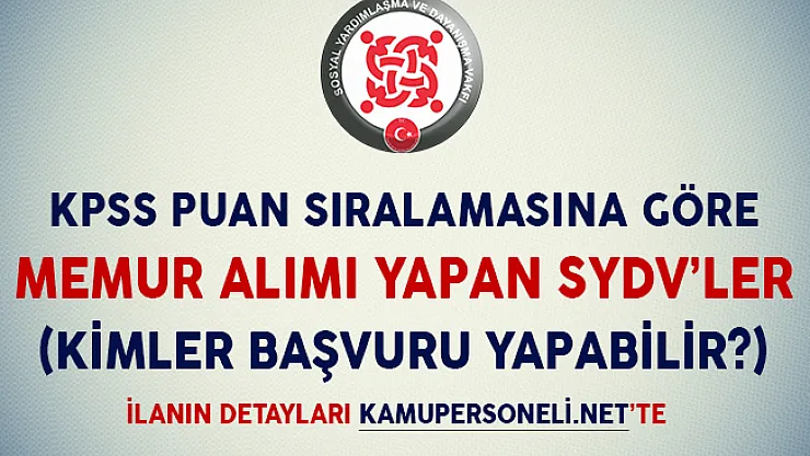 Bu iki SYDV tarafından yayımlanan personel alım ilanları Kamu Personeli Seçme Sınavı puan sıralamasına göre yapılıyor.