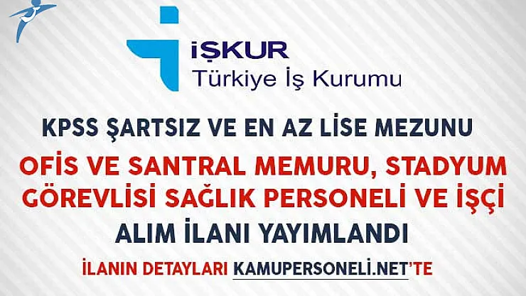 - KPSS Şartsız ve En Az Lise Mezunu Ofis ve Santral Memuru, Stadyum Görevlisi, Sağlık Personeli ve İşçi Alım İlanı Yayımladı