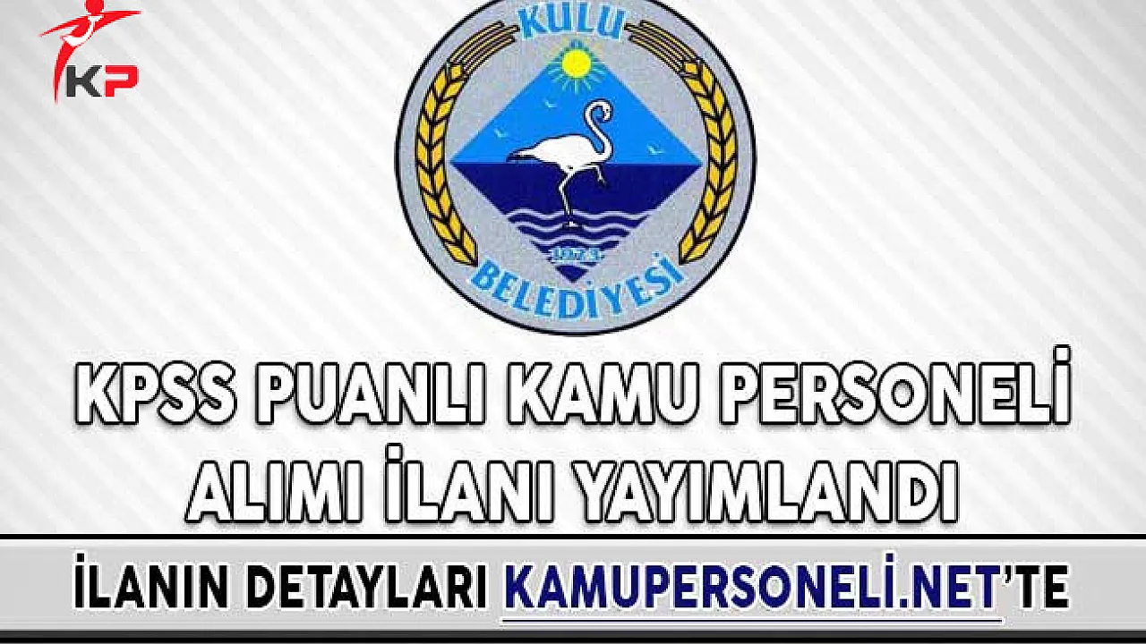 - Kulu Belediyesi KPSS Puanlı Kamu Personeli Alımı İlanı Yayımlandı