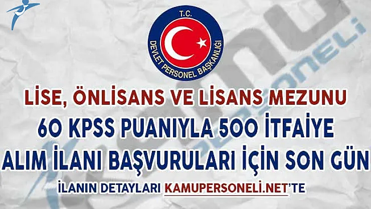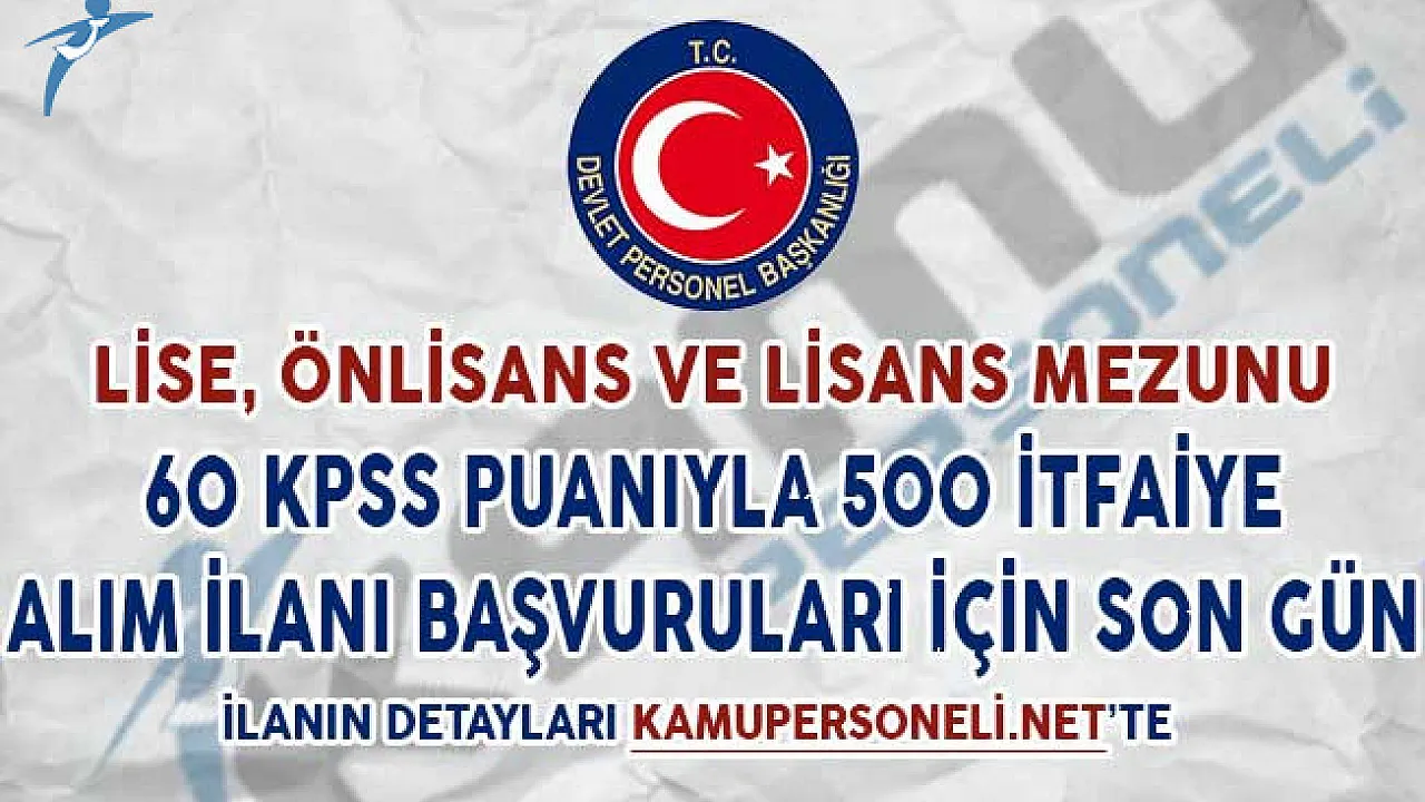 - Lise, Önlisans ve Lisans Mezunu 500 İtfaiye Alımı Başvuruları İçin Son Gün