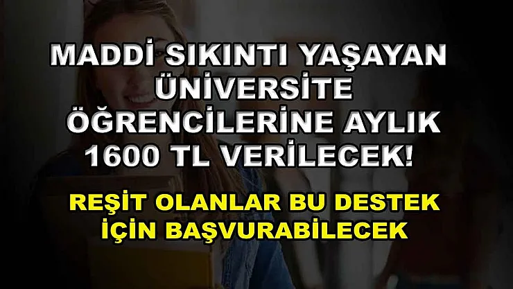 - Maddi sıkıntı yaşayan üniversite öğrencilerine aylık 1600 TL verilecek! Reşit olanlar bu destek için başvurabilecek
