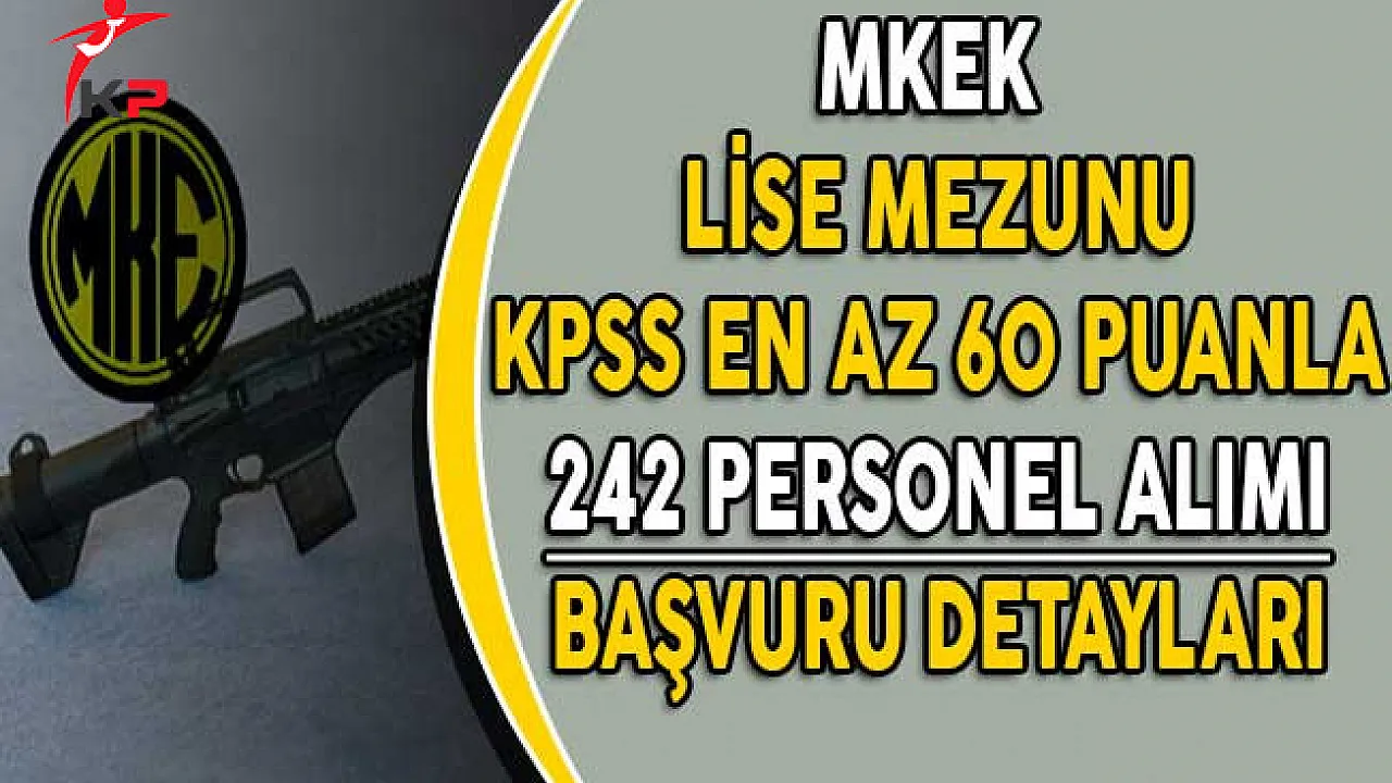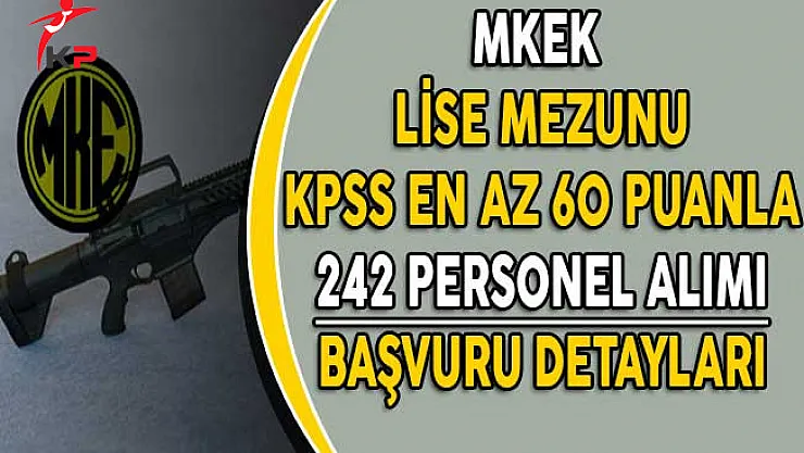 Makina ve Kimya Endüstrisi Kurumu (MKEK) Devlet Personel Başkanlığı aracılığı ile bir ilanını yayımlamıştı.Yayımlana ilanda MKEK lise mezunu KPSS en az 60 puan ile 242 personel alımı yapacağını duyurmuştu.