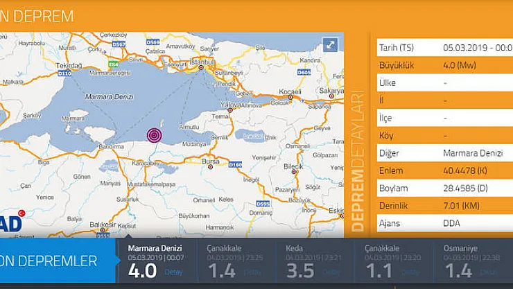 - Marmara'da Deprem oldu... Bandırma ve Mudanya arasındaki deprem İstanbul'da da hissedildi.