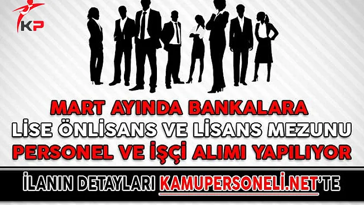 - Mart Ayında Bankalara Lise Önlisans ve Lisans Mezunu Personel ve İşçi Alımı Yapılıyor