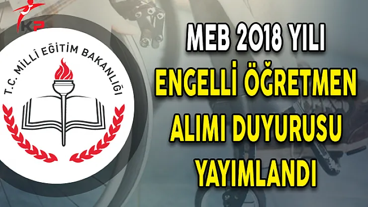 Milli Eğitim Bakanlığı İnsan Kaynakları Genel Müdürlüğü'nün internet sitesinde yer alan detaylara göre 2018 yılı engelli öğretmen alımı duyurusu yayımlandı. Söz konusu atamaların 2018 yılı Haziran ayında gerçekleşeceği ifade edildi.
