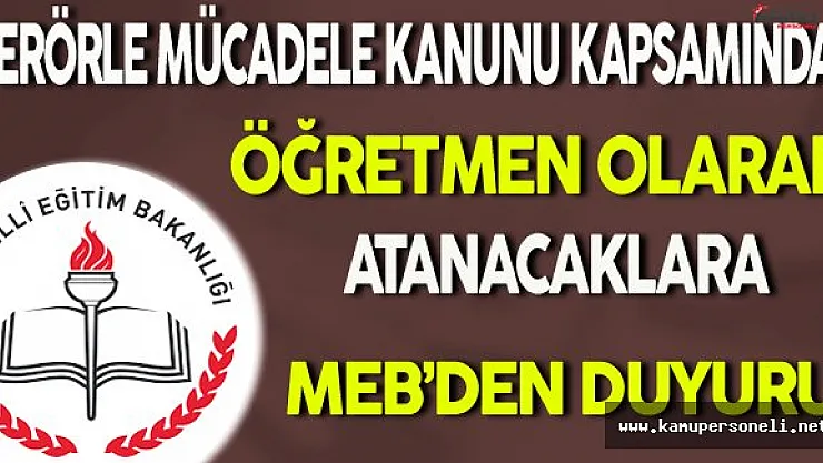 - MEB İKGM'den 3713 Sayılı Terörle Mücadele Kanunu Kapsamında Öğretmen Atamaları Duyurusu
