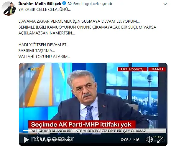 İŞTE MELİH GÖKÇEK'İN PAYLAŞIMI