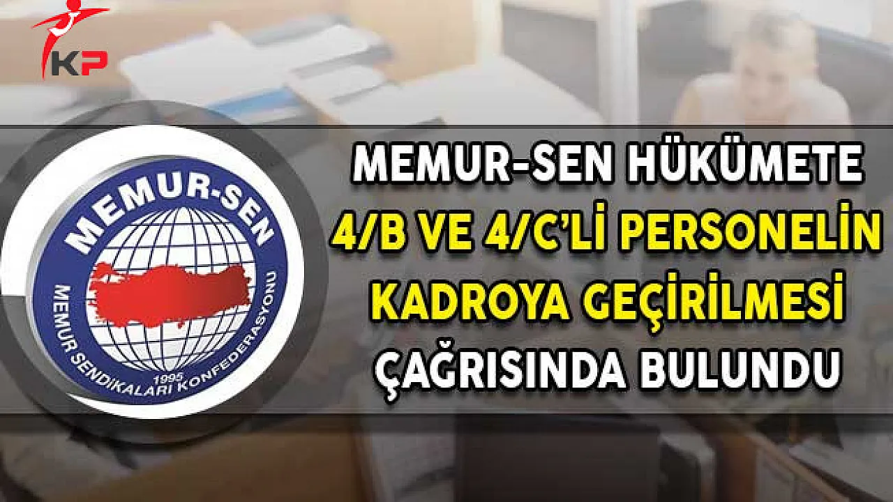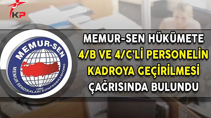 Memur-Sen Konfederasyonu internet sitesi üzerinden yayımladığı yazılı bir açıklama ile hükümete taşeron çalışanları ile birlikte 4/B ve 4/C’li personel de kadroya geçirilsin çağrısında bulundu.