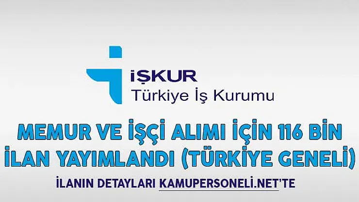 - Memur ve İşçi Alımı İçin 116 Bin İlan Yayımlandı (Türkiye Geneli)