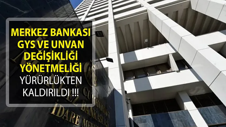 - Merkez Bankası Görevde Yükselme ve Unvan Değişikliği Yönetmeliği Yürürlükten Kaldırıldı!