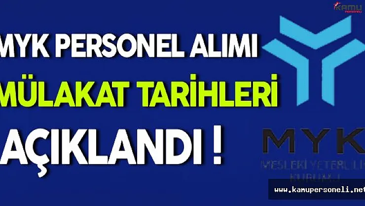 - Mesleki Yeterlilik Kurumu (MYK) Personel Alımına İlişkin Mülakat Tarihleri Açıklandı