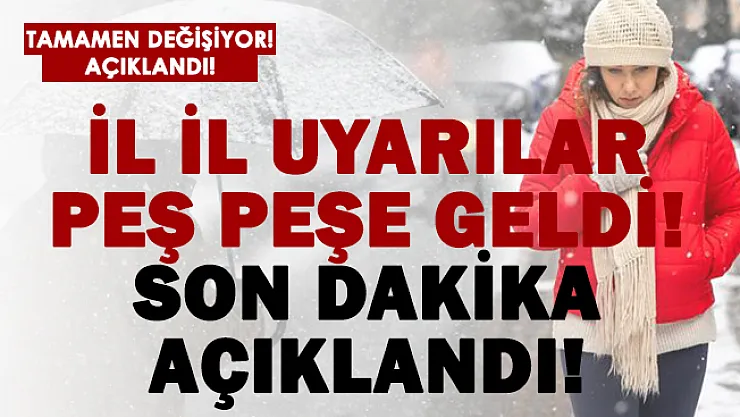 Meteoroloji Genel Müdürlüğü son dakika bir açıklama yaptı.Yapılan açıklamasında tamamen değişiklik olacağı belirtilirken, uyarıların il il yapıldığı duyuruldu.