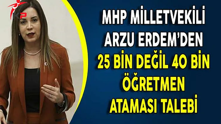 MHP İstanbul Milletvekili Arzu Erdem, özellikle öğretmen adayları tarafından, önce 20 bin olarak açıklanan ve ilave 5 bin öğretmen atamasıyla 25 bin olarak duyurulan öğretmen atamalarının en az 40 bin olmasını talep eden adayların sesini duyurdu.