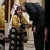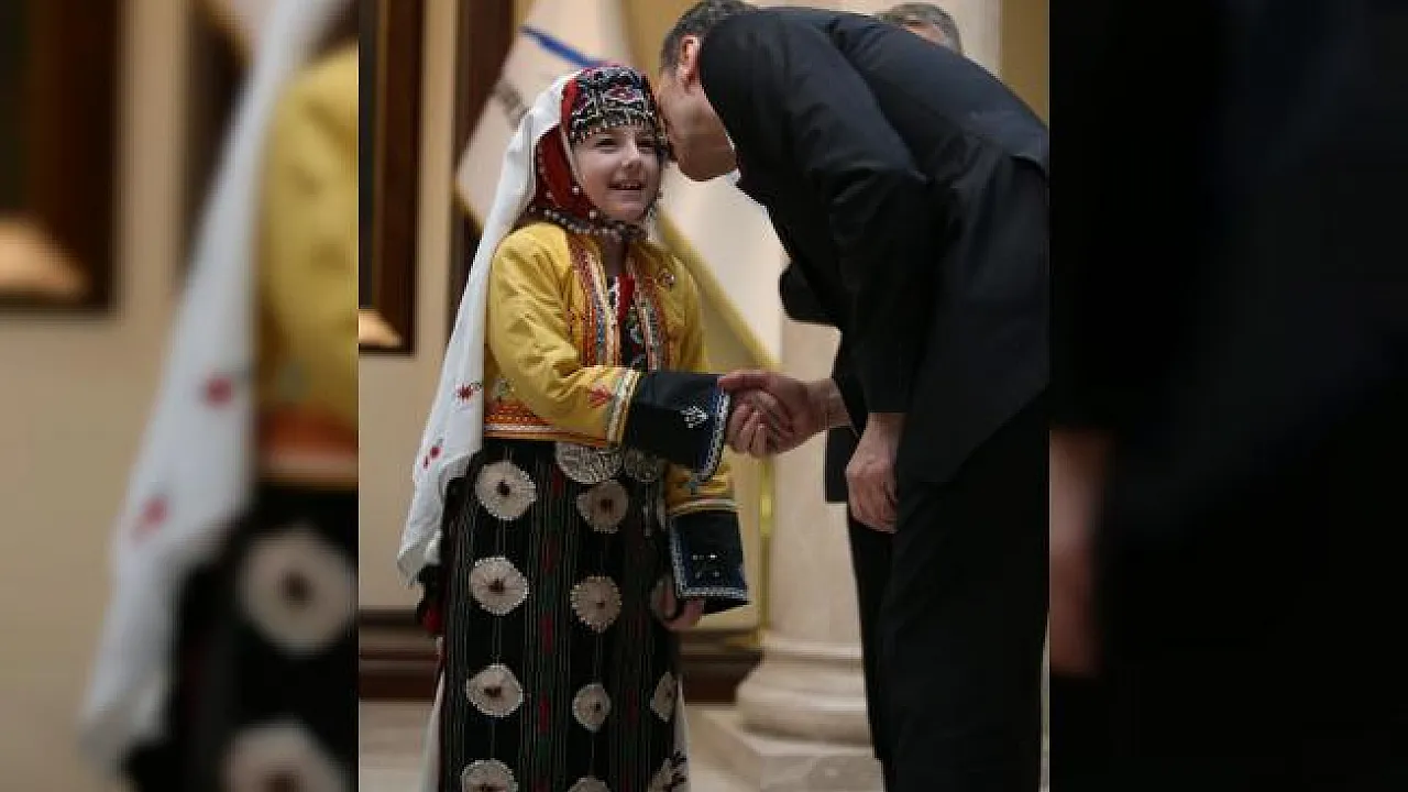 Bakan Selçuk, Valilik girişinde kendisini karşılayıp çiçek takdim eden ve şiir okuyan iki ilkokul öğrencisine hediye verdi.