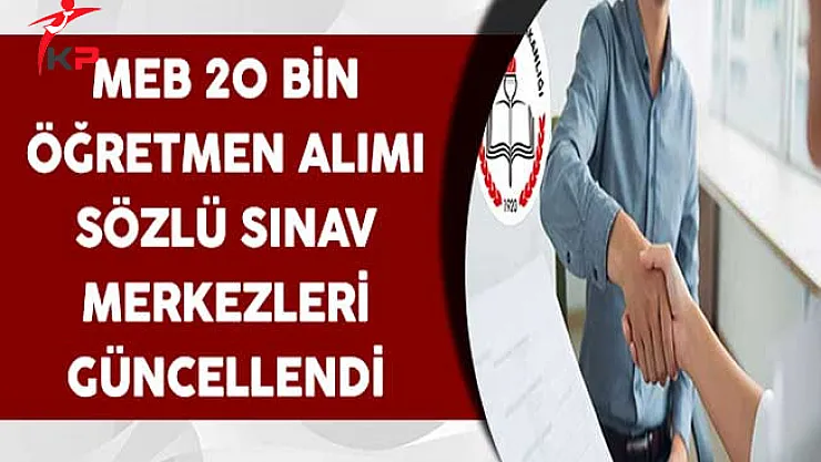 - Milli Eğitim Bakanlığı 20 Bin Öğretmen Alımı Sözlü Sınav Merkezleri Güncellendi