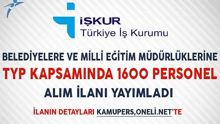 - Milli Eğitim Müdürlüklerine ve Belediyelere TYP Kapsamında 1600 Personel Alımı Yapılıyor
