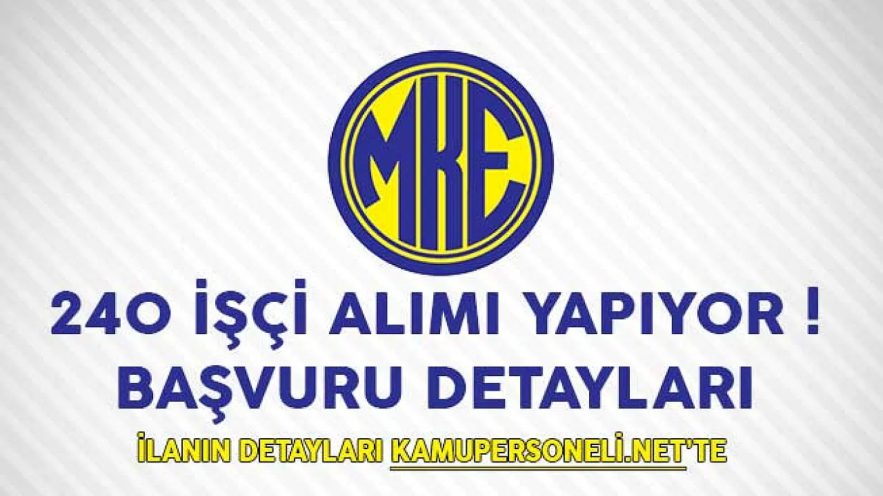 MKE tarafından yayımlanan ilanla beraber 240 daimi işçi alımı yapılacağı duyuruldu.İŞKUR'un resmi internet sitesi üzerinden yayımlanan ilanla beraber adaylardan talep edilen genel başvuru şartlarına yer verildi.