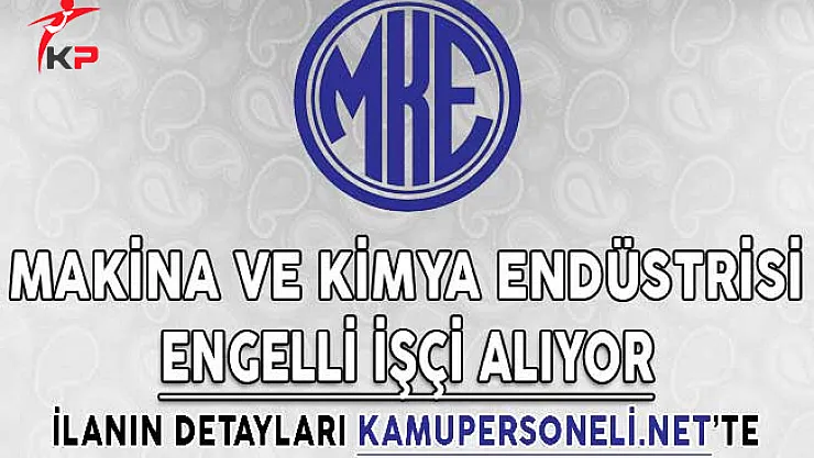 - MKEK Genel Müdürlüğü En Az Lise Mezunu Engelli İşçi Alımı Yapıyor