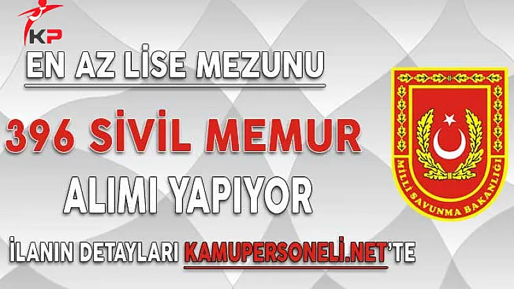 Milli Savunma Bakanlığı dün Devlet Personel Başkanlığının resmi web adresi üzerinden bir ilanını yayımladı ve ilanda en az lise mezunu KPSS puanı baz alınarak 396 sivil memur alımı yapacağını duyurdu. Dün yayımlanan ilana başvurular bugün itibari ile başladı. Ayrıca söz konusu ilana başvuru yapacak olan adaylar başvurularını 12 Şubat 2018 tarihine kadar gerçekleştireceklerdir.