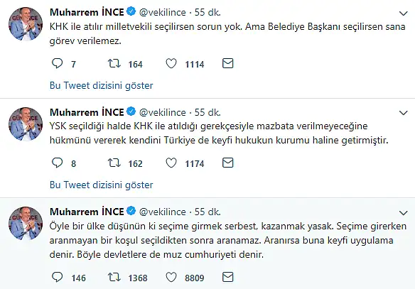 KHK ile atılır milletvekili seçilirsen sorun yok. Ama Belediye Başkanı seçilirsen sana görev verilemez.