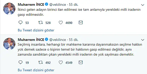 İkinci gelen adayın birinci ilan edilmesi ise tam anlamıyla yereldeki milli iradenin gasp edilmesidir.