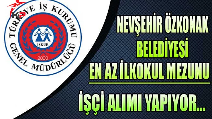 - Nevşehir Özkonak Belediyesi En Az İlkokul Mezunu İşçi Alıyor