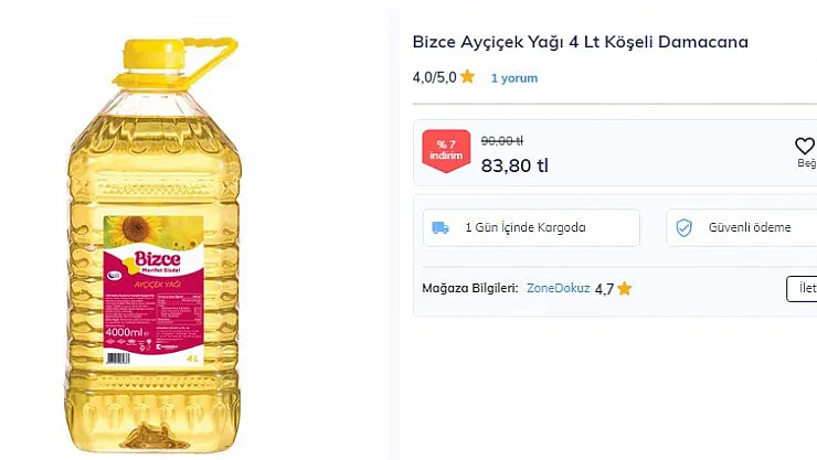 Bunun ardından online marketlerde indirimli ürün araştırması yapan vatandaşlar yeni bir indirim ile karşılaştı. needion isimli internet sitesinde Bizce 4 litre ayçiçek yağı 83 liraya kadar düştü. Bunun ardından yapılan duyuruda ise ürünün stoklarla sınırlı olduğu yetişenlerin alabileceği ve ürün stokta bittiğinde ilanın yayından kaldırılacağı belirtildi. Bu kapsamda ürünü almak için siteye giren vatandaşlar ürün stokta tükendiğinde ürünü bulamayabilirler.