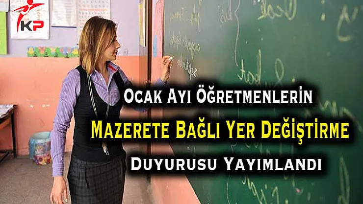 - Ocak Ayı Öğretmenlerin Mazerete Bağlı Yer Değiştirme Duyurusu Yayımlandı