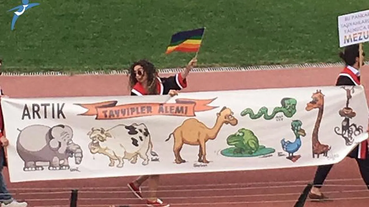 ODTÜ’de 6 Temmuz'da gerçekleşen diploma töreninde Tayyipler Alemi karikatürünü Pankart olarak taşıyan 3 öğrenci, 7 Temmuz günü Cumhurbaşkanı Erdoğan'a hakaret suçlamasıyla gözaltına alınmıştı.