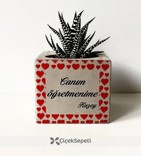 16- Kişiye Özel Öğretmenler Günü Temalı Beton Saksıda Sukulent