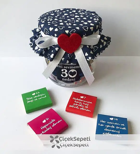 Öğretmeninize onu ne kadar çok sevdiğinizi anlatmanın en farklı ve lezzetli hali, elit madlen çikolatalara sarılmış, "Canım Öğretmenim Seni Sevmemin 30 Nedeni" çikolata kavanozu.