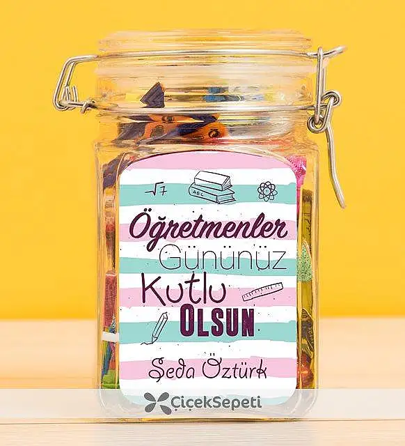 Nostalji tutkunu öğretmeninize, nostaljik tatlardan oluşan ve üzerinde; ‘Öğretmenler Gününüz Kutlu Olsun’ yazan kişiye özel bir nostaljik kavanoz hediye edin.