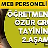- Öğretmenlerin Özür Grubu Tayininde 2.Aşama Başlıyor