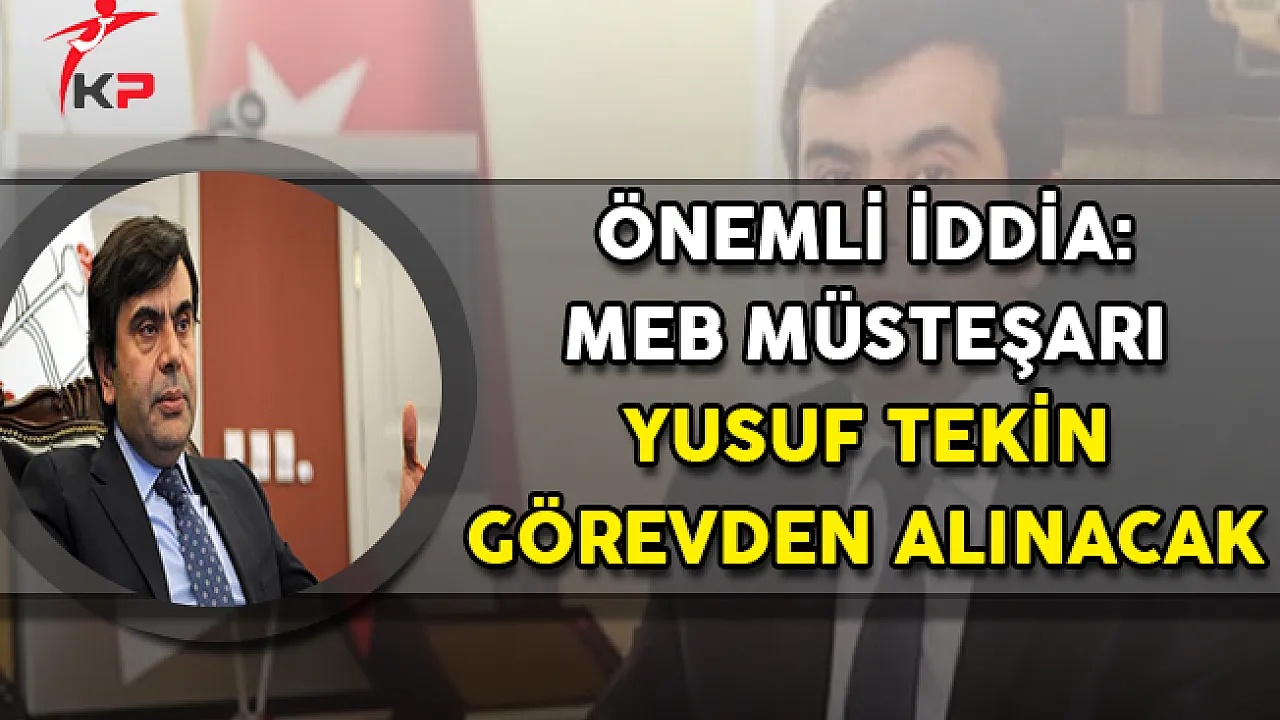 YUSUF TEKİN GÖREVDEN ALINACAK İDDİASI 2013 yılından bu yana Milli Eğitim Bakanlığı Müsteşarı olan Yusuf Tekin'in görevden alınacağı iddia edildi.MEB Müsteşarı Yusuf Tekin, Cumhurbaşkanı Recep Tayyip Erdoğan tarafından eleştirilen ve daha sonra kaldırılan