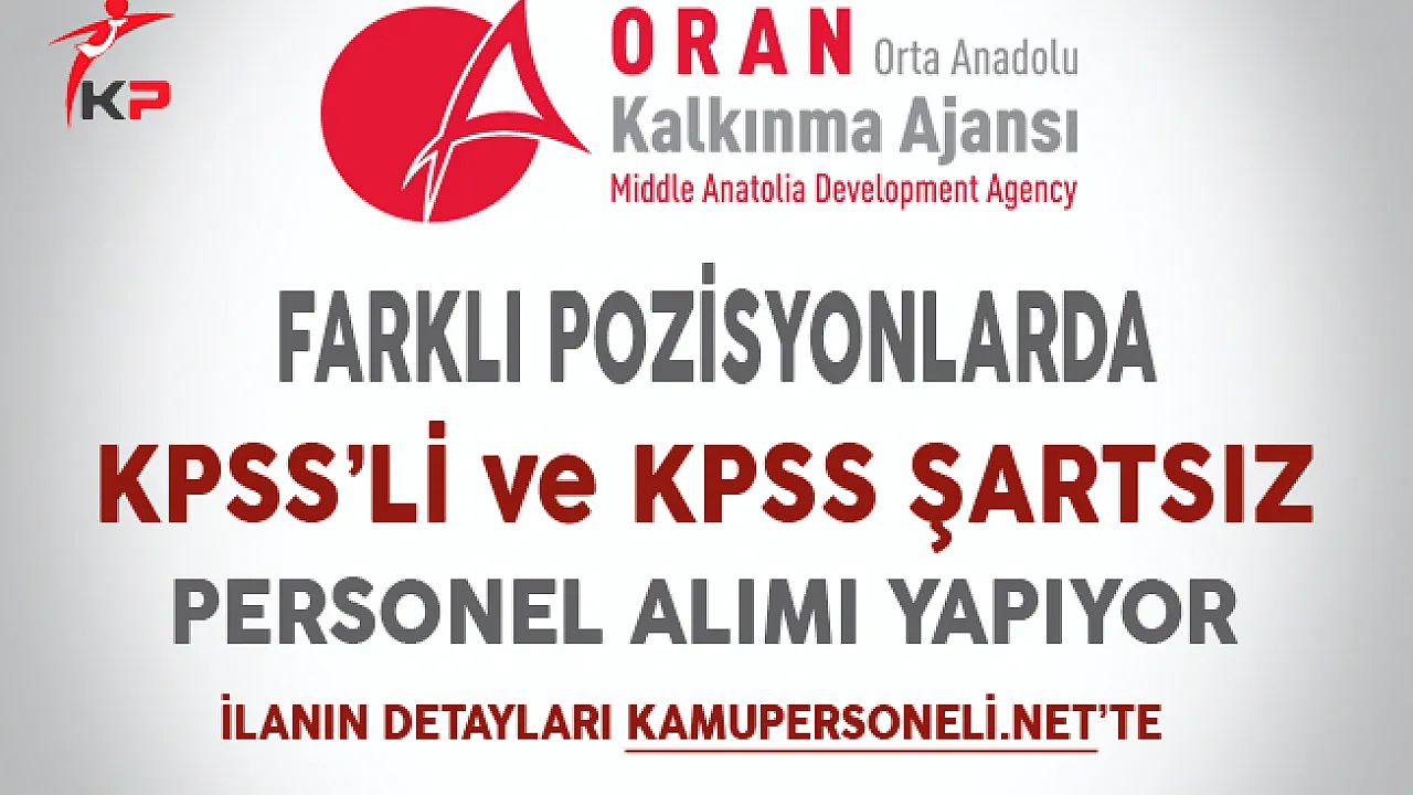Orta Anadolu Kalkınma Ajansı, Devlet Personel Başkanlığı resmi sitesinde bir ilan yayımladı.Yayımlanan ilana göre Kayseri, Sivas ve Yozgat'ta görevlendirilmek üzere3 (üç) Uzman ile 1 (bir) Destek Personeli alımı yapılacak.