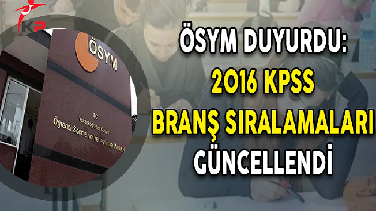 ÖSYM : 2016 KPSS Branş Sıralamaları Güncellendi