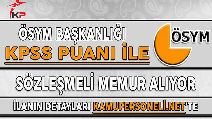 Ölçme Seçme ve Yerleştirme Merkezi Başkanlığı, Devlet Personel Başkanlığının resmi web adresinde yer alan ilanlar bölümünde bir ilanını yayımladı ve yayımlanan ilanda ÖSYM Başkanlığı kendi bünyesinde görevlendirmek üzere KPSS puanı ile sözleşmeli memur alımı yapacağını duyurdu.