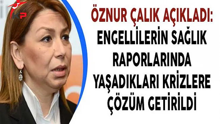 Adalet ve Kalkınma Partisi Genel Başkan Yardımcısı Öznur Çalık engelli vatandaşların sağlık raporu alım konularında yaşadıkları sorunları ifade ederek 'Şimdi Sağlık Bakanlığımızın yapmış olduğu düzenlemelerle beraber inşallah önümüzdeki ay içerisinde yön