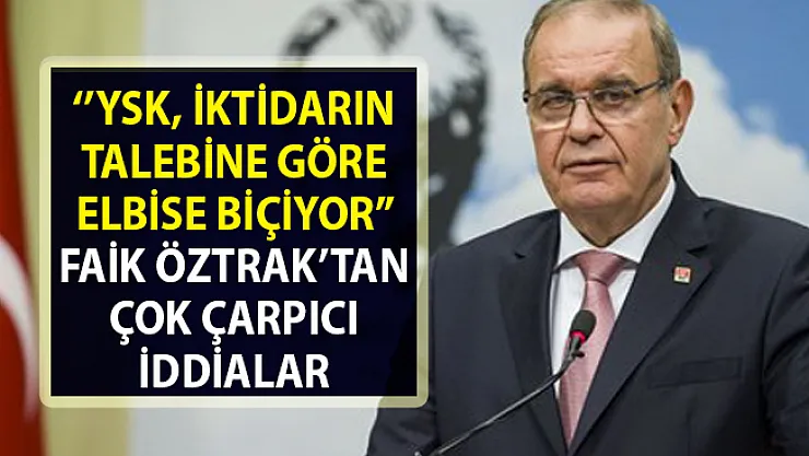 CHP Genel Başkan Yardımcısı ve Parti Sözcüsü Faik Öztrak, seçim gündemini değerlendirdi.. YSK'nın itiraz sürecindeki tutumuna ve tarafsızlık ilkelerine karşı bazı suçlayıcı iddialarda bulunan Faik Öztrak, düzenlediği basın toplantısında şundaları söyledi;